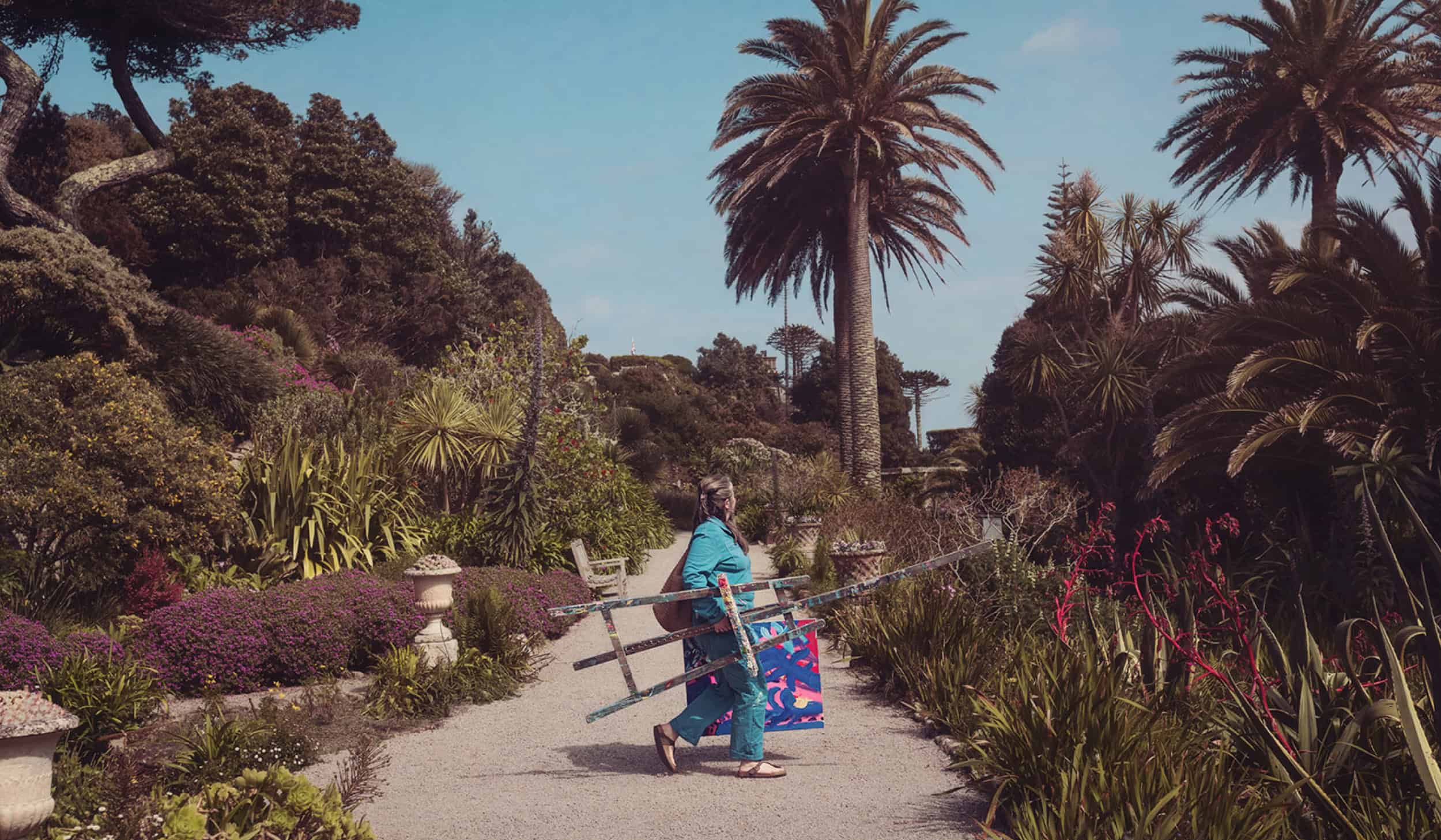 She painted yucca flowers, oversized blooms and vivid pelargoniums, describing the garden as “overflowing with lusciousness” – a completely different setting from the open beaches of the day before.